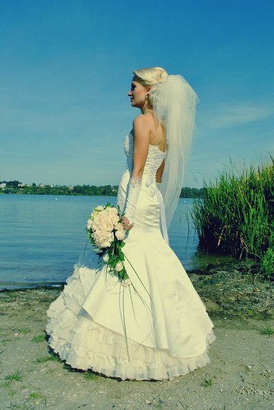 !ТЕРМІНОВО. Продам свою весільну сукню. Без фати. Стан відмінний, чистенька, немає ніяких дефектів. (м. Тернопіль) в інше місто оплачу доставку. Розмір може коливатися, т. я корсет стягується. Сукня розрахована на зріст до 1, 65(якщо вище, не взувати високі підбори) і на вагу 50-65 кг. Фата не продається, (можу пошити таку саму 600, 00 грн. ) до плаття віддам рукавички, подушечку для обручок. |