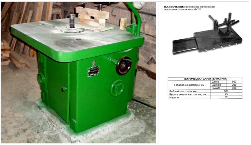 Станок предназначен для выполнения разнообразных фрезерных работ по дереву по направляющим линейкам с ручной подачей ( изготовление вагонки, половой доски, плинтуса, наличника, филенки и других столярных и мебельных изделий ), зарезки простых шипов с помощью шипорезной каретки и криволинейного фрезерования по шаблону с ручной подачей.
