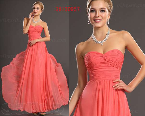 Платье выпускное или вечернее длинное шелковое кораловое очен красивое - Вечерние платья