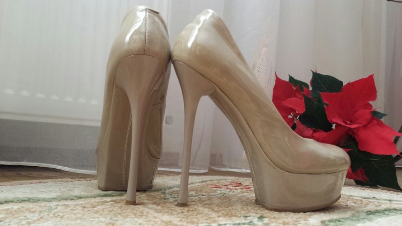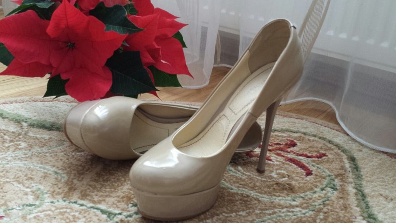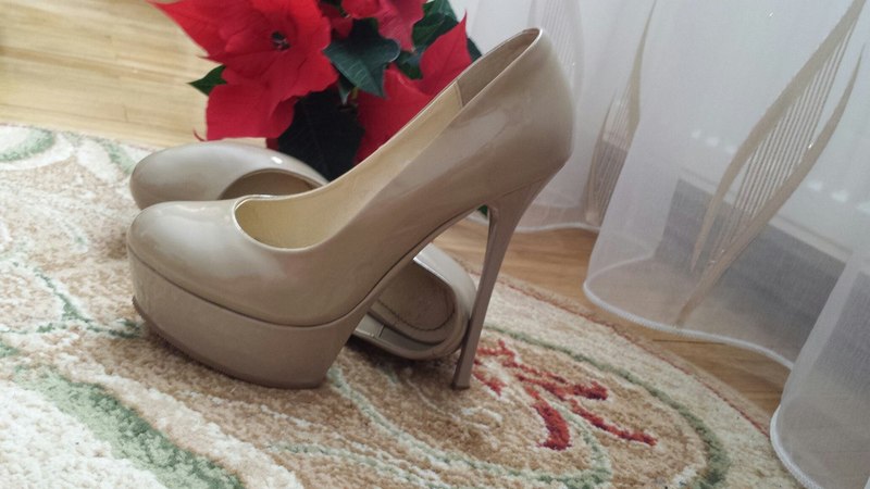 Бежеві лакові туфлі, 38 розміру, по стельці 24 см, шпилька 14,5 см, танкетка 3,5. Гарний стан, взувала лише раз. |