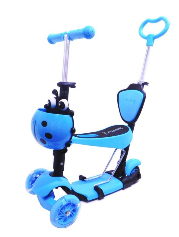 Самокат 3 в 1 для самых маленький c родительской ручкой. Использование от 1 года. Может использоваться как каталка,беговел,самокат. В комплекте сидение, Т-образный руль,корзинка, родительская ручка, дополнительная поддержка сидения. Регулируемая высота сидения, регилируемый руль, колеса светятся