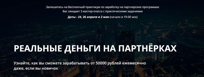Это регистрация на серию мастер-классов “Реальные день-ги на партнерках”, куда я вам настоятельно рекомендую сходить.