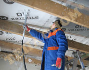 Утеплення мансард заливним пінопластом екоізол. Мансарди утепляються шляхом заливки під надлишковим тиском пінопласту екоізол. Пінопласт заливається за попередньо натягнуту по кроквах плівку паробар'єр. Даний вид утеплення дозволяє щільно заповнити всі пустоти між кроквами, що дозволить досягти максимального ефекту від утеплення. Вартість утеплення мансард при товщині утеплювача 15 см складає від 230 грн за 1м2. |